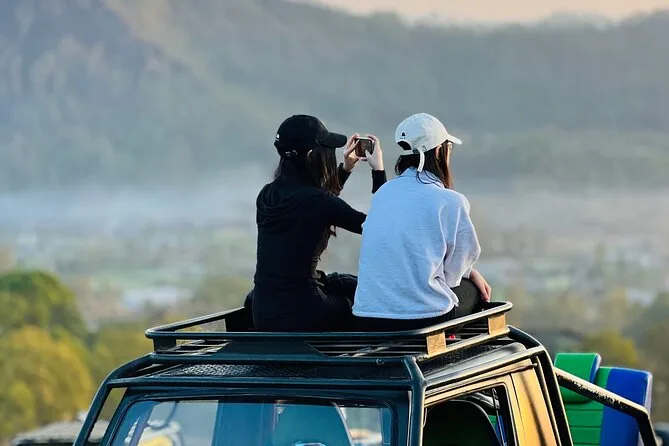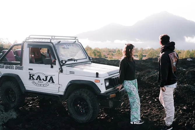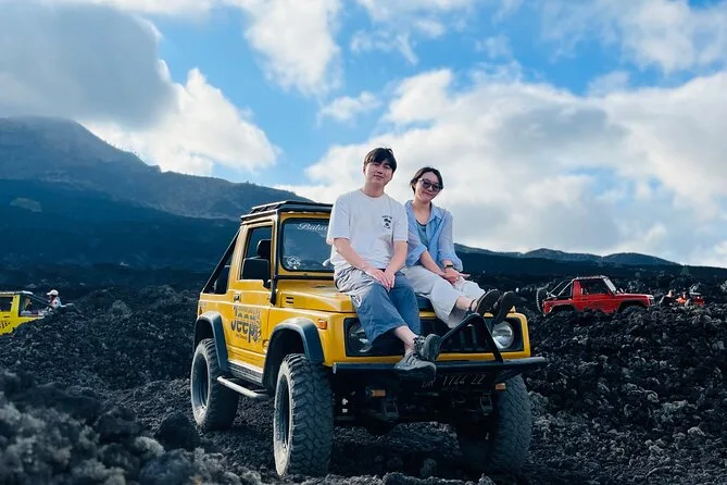 Erlebe den Sonnenaufgang am Mount Batur bequem im 4WD Jeep – ganz ohne Wanderschuhe – und fahr durch wilde schwarze Lavafelder mit einem lokalen Guide, der spannende Geschichten erzählt. Danach kannst du wählen: entspann in einer natürlichen heißen Quelle oder besuch eine Reisterrasse, bevor es mit Frühstück zurückgeht.