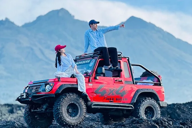 Den Sonnenaufgang auf Bali im Jeep über schwarzem Vulkangestein erleben