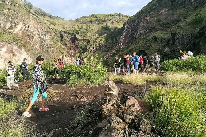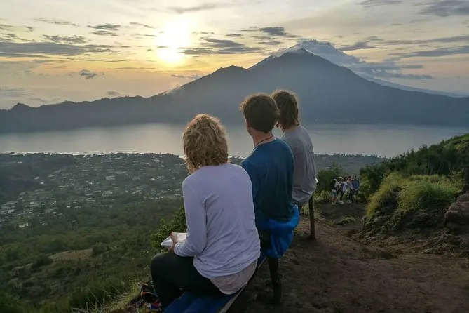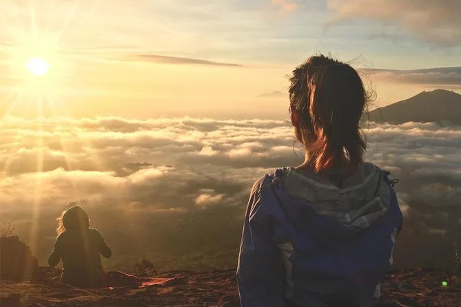 Dein Tag startet mit frühem Hoteltransfer, inklusive Wasserflasche unterwegs. Ein privater Guide führt dich vor Sonnenaufgang auf den Mount Batur. Am Gipfel gibt’s Frühstück mit vulkanisch gedämpften Eiern und Tee. Du erkundest mehrere Krater des heiligen Vulkans Balis und kannst danach in natürlichen heißen Quellen entspannen, bevor es zurückgeht.