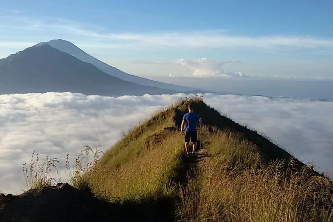 Starte vor Sonnenaufgang mit Hoteltransfer zu einer privaten Mount Batur Wanderung, geführt von einem lokalen Guide, der jeden Pfad kennt. Erlebe den Sonnenaufgang vom zweithöchsten Berg Balis, trinke Tee und genieße Frühstück aus vulkanischem Dampf. Nach dem Abstieg vorbei an alten Kratern entspannst du in natürlichen heißen Quellen – müde Muskeln treffen auf warmes Wasser und Bergpanorama.