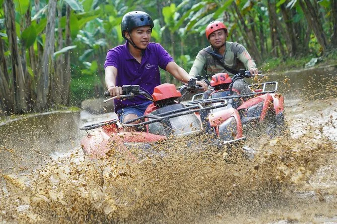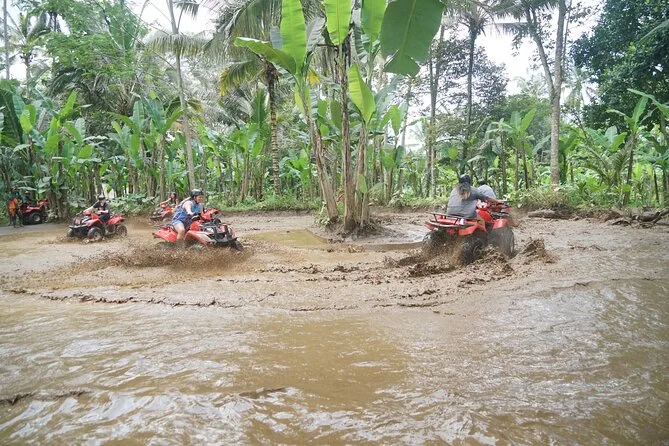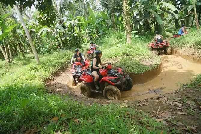 Dein Tag startet mit privatem Hoteltransfer in den wichtigsten Touristengebieten Balis, inklusive Wasserflaschen, kompletter Versicherung, Sicherheitsausrüstung für die Quads und professioneller Anleitung durch lokale Guides. Nach etwa zwei Stunden Fahrt vorbei an Reisfeldern und Höhlen kannst du dich mit frischen Handtüchern und Duschen erfrischen, bevor es zum traditionellen Mittagessen im Abiansila geht – mit Zugang zur Poolbar zum Abkühlen. Anschließend geht es per privatem Auto weiter zum Tegenungan Wasserfall und in den Ubud Sacred Monkey Forest, bevor du bequem zurückgebracht wirst.