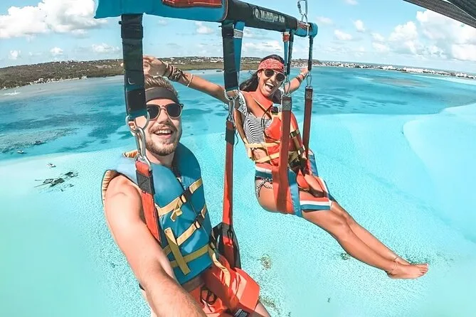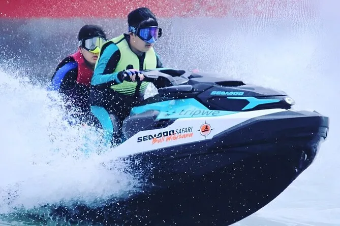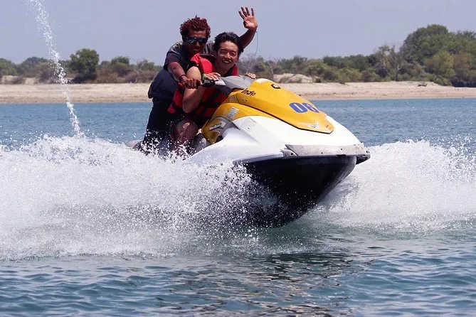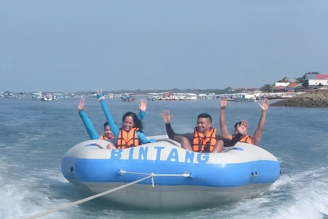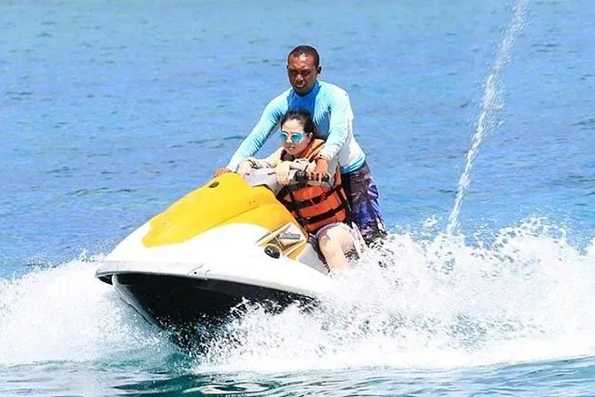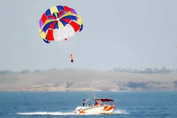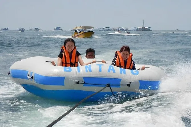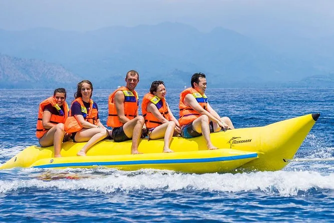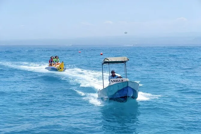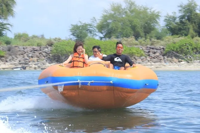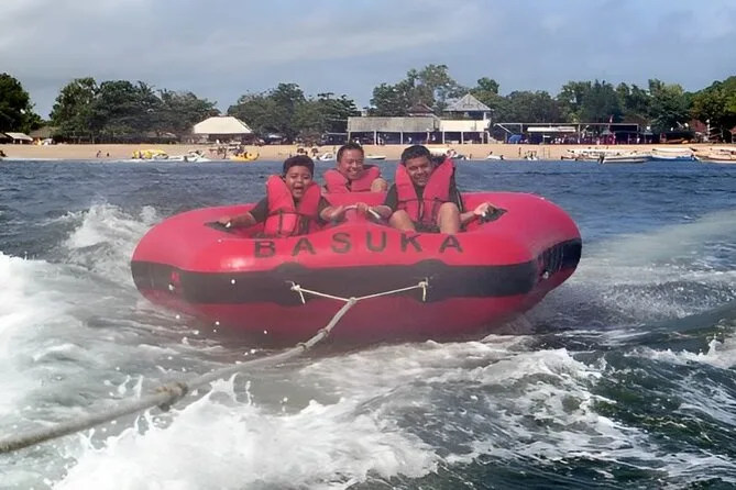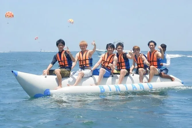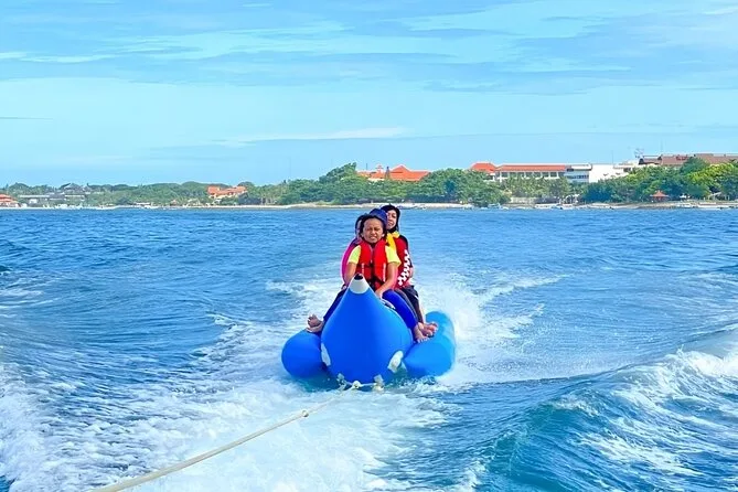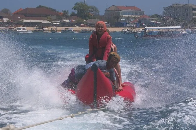Erlebe den wilden Wasserspaß in Tanjung Benoa, Bali: Schwebe beim Parasailing über das Wasser, halte dich fest beim Banana- und Donut-Boot und düse mit dem Jet-Ski mit einem lokalen Guide. Inklusive Hoteltransfer und Duschen – ein Tag voller Lachen und Abenteuer, den du nicht so schnell vergisst.