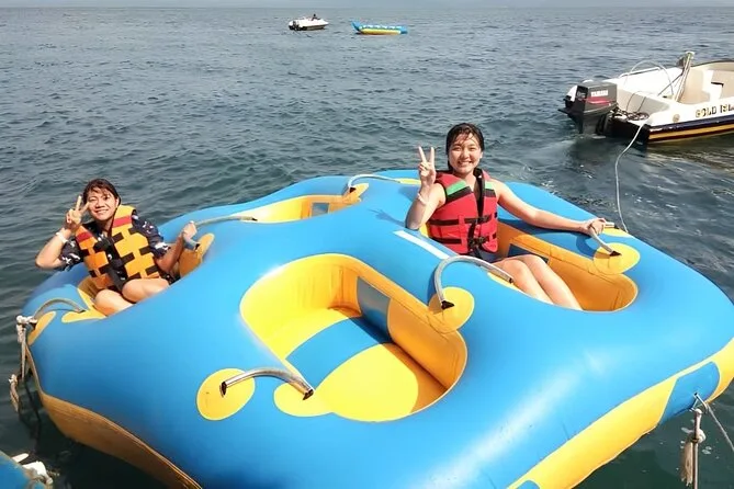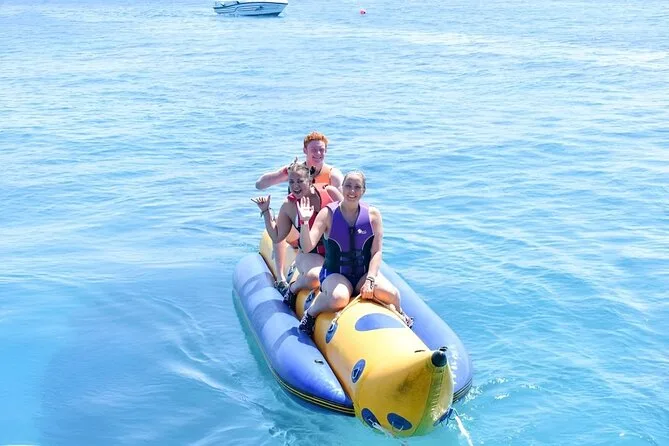 Parasailing dauert etwa 6 Minuten; Banana- und Donut-Boot sowie Jet-Ski jeweils rund 15 Minuten.