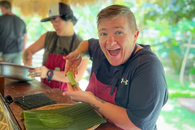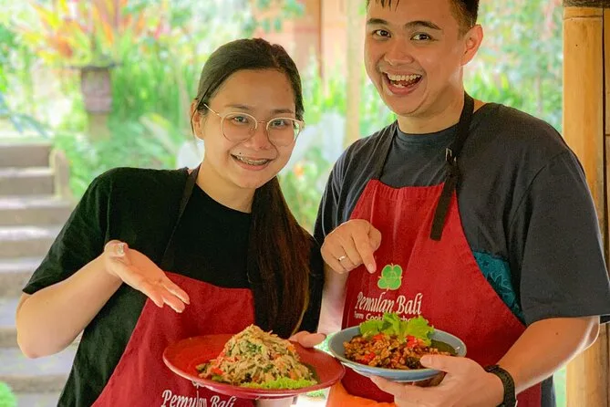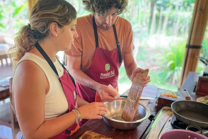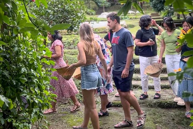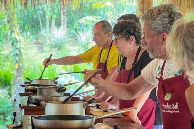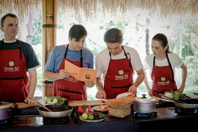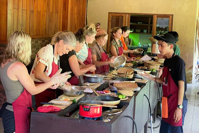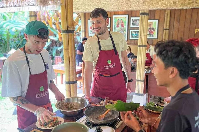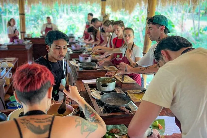 Dein Tag beinhaltet eine kostenlose Abholung vom Zentrum Ubuds, alle frischen Zutaten aus Pemulans Bio-Garten, Betreuung durch freundliche lokale Köche während des praktischen Kochens, Kaffee oder Tee beim Essen unter den Bäumen – plus gedruckte Rezepte und Essensreste zum Mitnehmen.