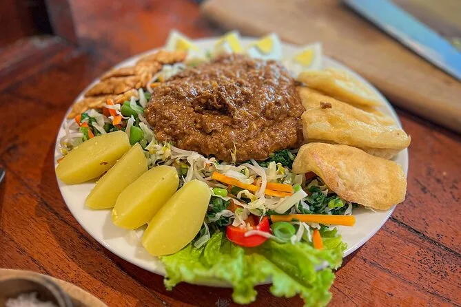 Du schlenderst über Ubuds lokalen Markt, probierst unbekannte Früchte, pflückst Kräuter direkt im Bio-Garten von Pemulan und kochst sechs balinesische Gerichte in einer offenen Küche – begleitet von freundlichen Guides. Beim gemeinsamen Mittagessen unter Bäumen entstehen neue Freundschaften – und vielleicht nimmst du Kokosduft an den Fingern und ein Lächeln mit nach Hause.