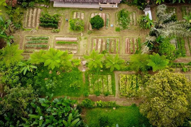 Die Bio-Farm befindet sich außerhalb von Ubud im ländlichen Bali; der Transport von der Stadt ist im Angebot enthalten.