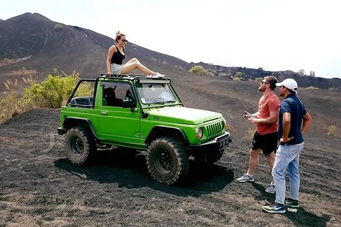 Erkunde Mount Batur mit dem 4WD Jeep über schwarze Lavafelder, entdecke Höhlen und vulkanische Landschaften, und entspanne anschließend in natürlichen heißen Quellen mit Blick auf den Lake Batur. Mittagessen mit Panorama inklusive – erwarte beeindruckende Momente voller Ruhe und Staunen.