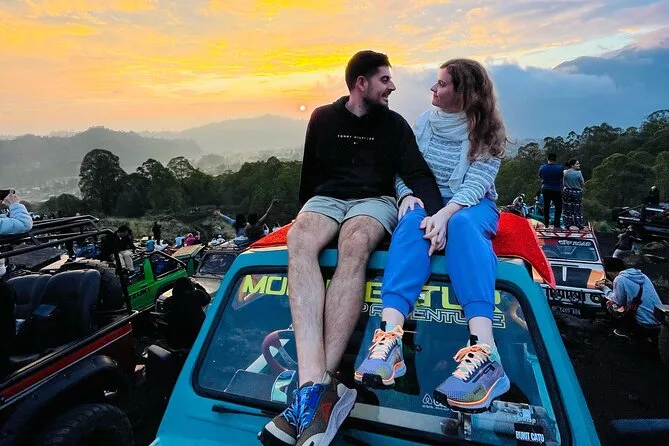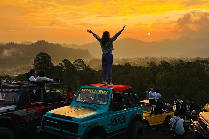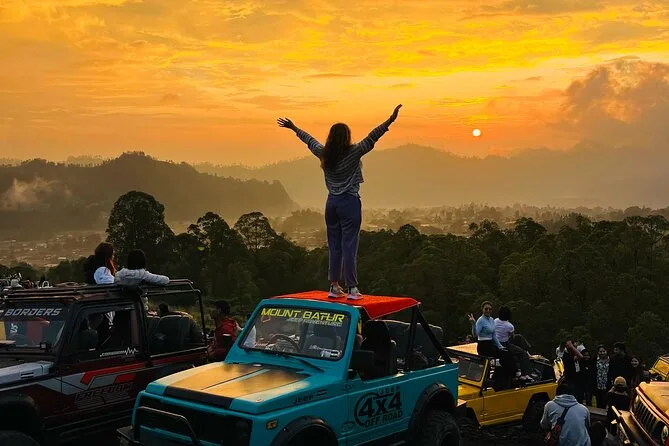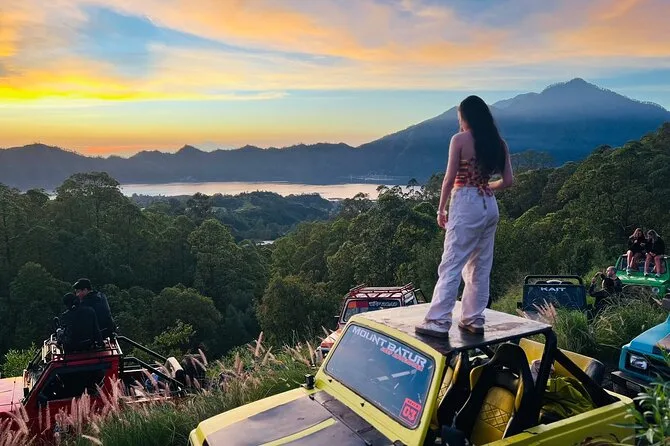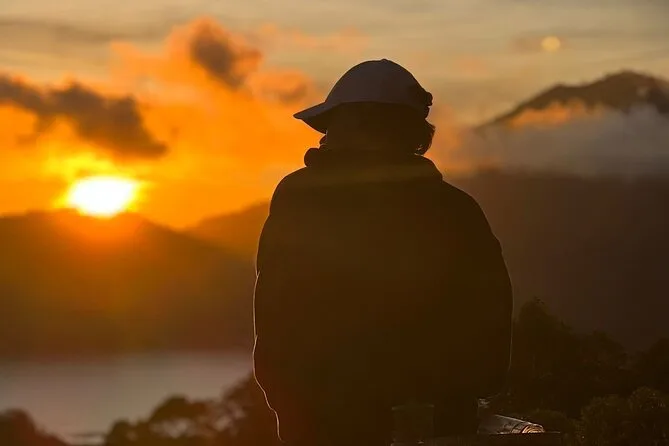 Dein Tag beginnt mit einer frühen Hotelabholung (außer Lovina, Amed & Balian Beach), dann fährst du mit einem klassischen Jeep zum Mount Batur, um den Sonnenaufgang auf 1.400 Metern zu erleben. Dazu gibt’s ein leichtes Frühstück (Bananensandwich, gekochtes Ei & Tee oder Kaffee). Anschließend erkundest du die schwarzen Lavafelder von 1963 mit deinem lokalen Guide, der spannende Geschichten erzählt – und wenn du möchtest, kannst du danach in den natürlichen Thermalquellen mit Blick auf den Batur-See entspannen, bevor es zurückgeht.