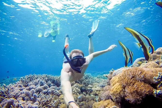 Dein Nusa Penida Abenteuer startet früh mit Abholung am Hotel und einem freundlichen lokalen Guide, der jeden Geheimweg kennt. Schnorchle neben Mantarochen in kristallklaren Buchten, genieße ein indonesisches Mittagessen mit Meerblick und entdecke dramatische Küsten wie Broken Beach und Kelingking Beach – bevor du glücklich und salzig zurückkehrst.