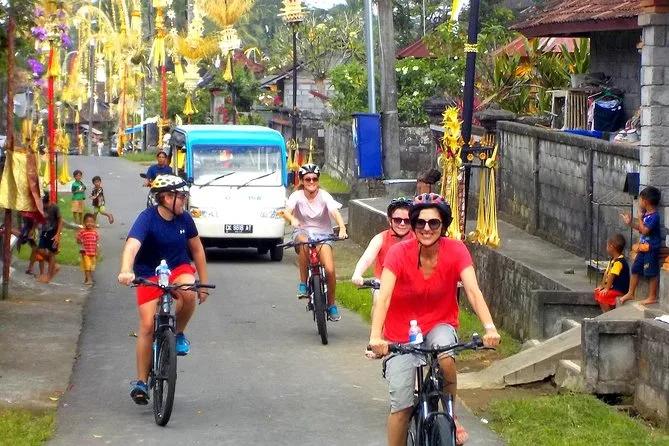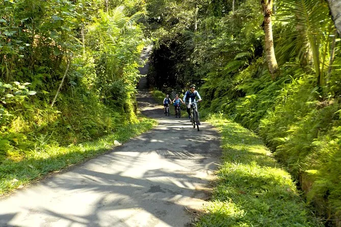 Deine halbtägige Tour umfasst Hotelabholung und Rückfahrt in Ubud, Wasserflaschen unterwegs, Nutzung von E-Bike und Helm (also keine Sorgen), einen lokalen Guide, der alle Abkürzungen kennt, Eintritt zum Tirta Empul Tempel und zum Abschluss ein balinesisches Mittagessen, bevor es zurückgeht.