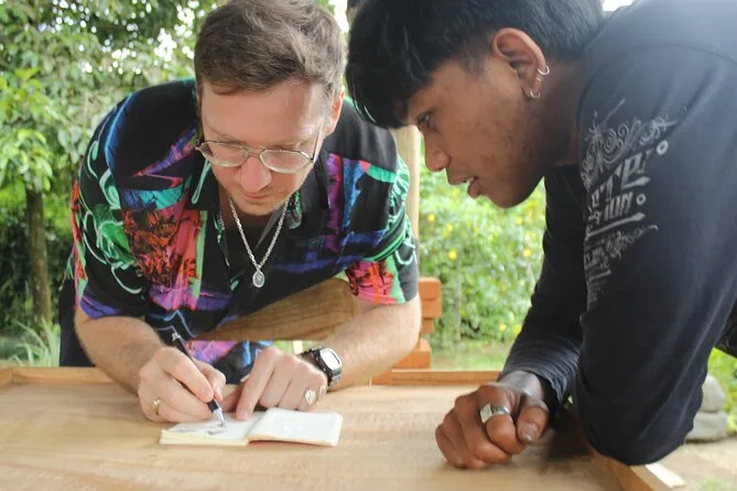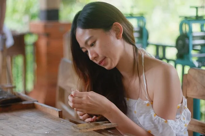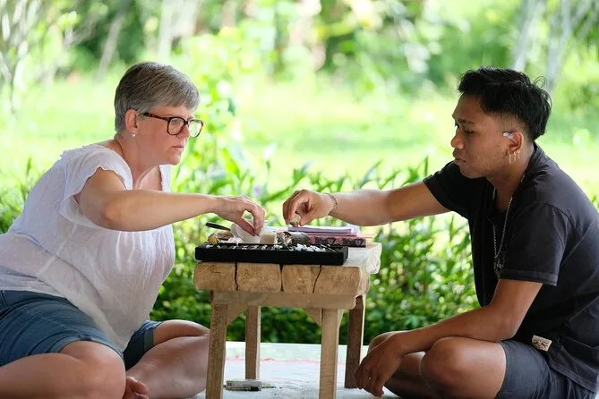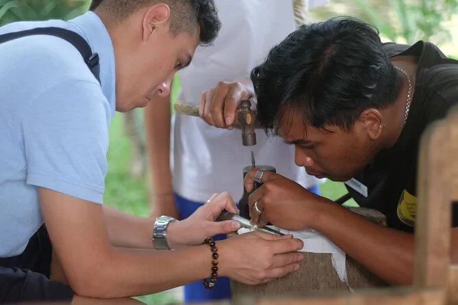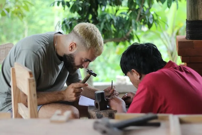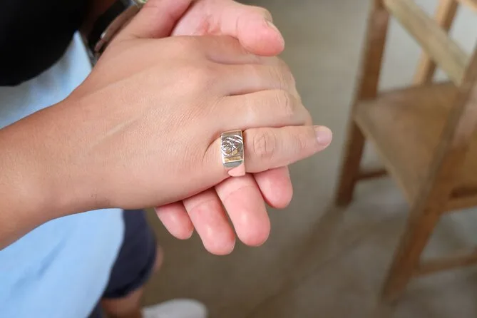 Dein Tag startet mit der Abholung vom Hotel in Ubud, gefolgt von einem Willkommensgetränk wie balinesischem Kaffee oder Tee und lokalen Snacks im familiengeführten Atelier im Dorf Delodsema. Erfahrene Silberschmiede begleiten dich als Lehrer und Geschichtenerzähler, während du mit allen nötigen Werkzeugen und 7 Gramm Silber dein eigenes Schmuckstück anfertigst – zum Schluss nimmst du dein Werk stolz mit nach Hause.