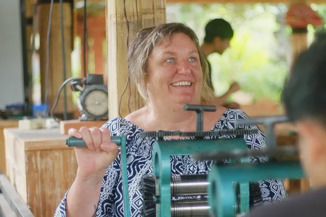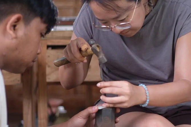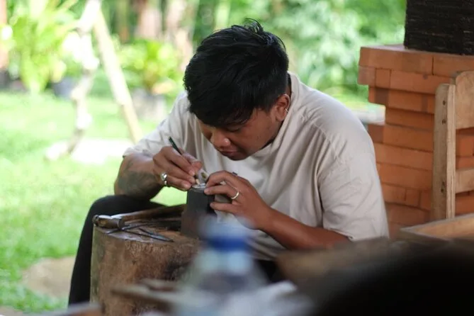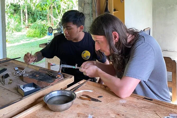 Begib dich mit lokalen Kunsthandwerkern in Ubud auf einen praktischen Silberschmiede-Workshop im Familienatelier – inklusive Hoteltransfer, balinesischen Snacks und dem Erlernen traditioneller Techniken, während du dein eigenes Schmuckstück anfertigst. Freu dich auf Lachen, Geschichten und eine Verbindung zu Balis kreativem Geist, die lange bleibt.