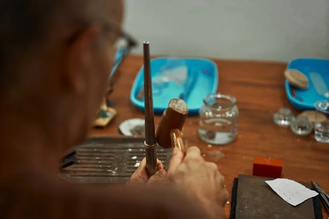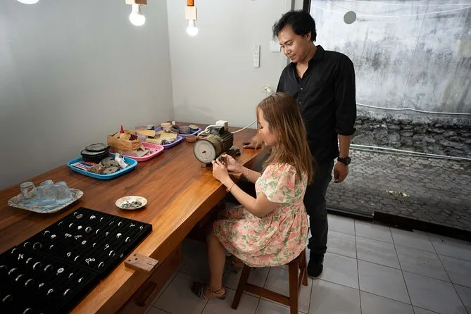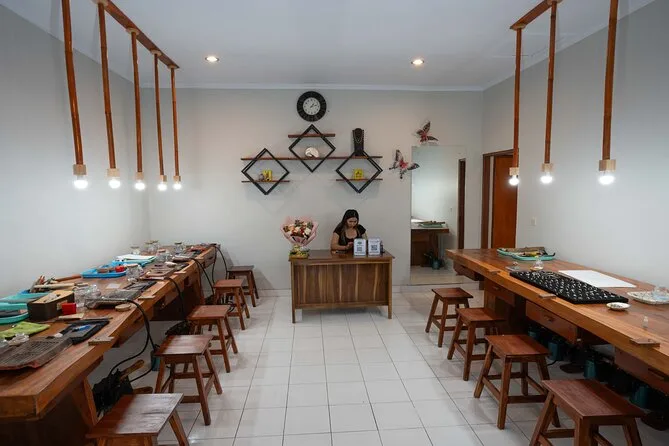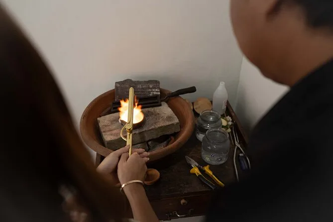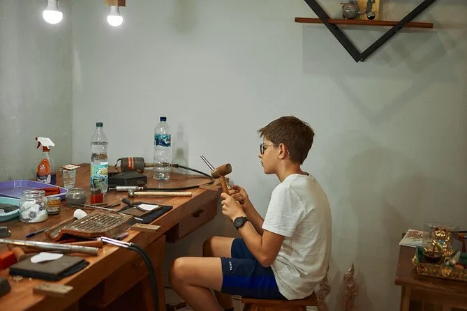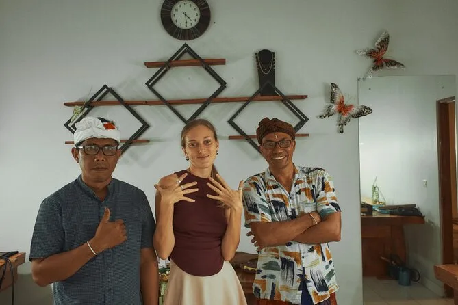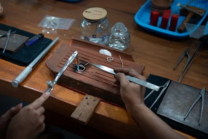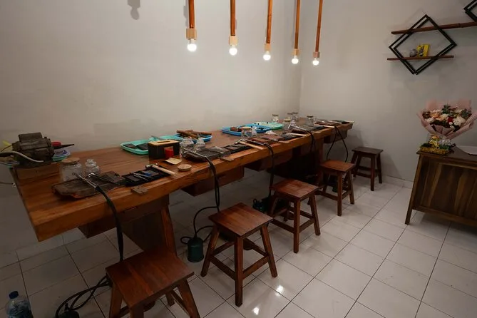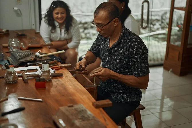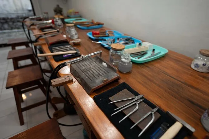 Deine Buchung umfasst alle Materialien und Werkzeuge für dein Silberschmuckstück (bis zu 7 Gramm), professionelle Anleitung von erfahrenen lokalen Silberschmieden bei jedem Schritt, kostenloses Mineralwasser und einen traditionellen Snack während des Workshops sowie gratis WLAN vor Ort, damit du deine Fotos direkt teilen kannst, bevor du mit deinem neuen Unikat zurück ins lebendige Ubud gehst.