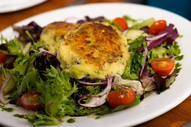 Die Show startete mit einem Knall (buchstäblich, jemand ließ ein Requisit fallen) und plötzlich wurden wir in Jahrhunderte voller Cork-Geschichten und Witze mitgerissen, die schneller kamen, als ich folgen konnte. Die Schauspieler waren Einheimische – man merkte es an ihrem lockeren Umgang und den kleinen Seitenhieben auf die Stadt. Mein Partner verschluckte sich fast an seinem Baileys-Cheesecake, als es um das „Sprechen in Cork“ ging. Der Eintopf schmeckte, als hätte ihn jemand von der Oma gekocht – kräftig und pfeffrig – und der Salat hatte eine überraschend scharfe Senfnote. Die Kinder am Nachbartisch bekamen Schokokekse, die größer waren als ihre Hände – ein kleines Mädchen versuchte sogar, ihren gegen mehr Eis einzutauschen.