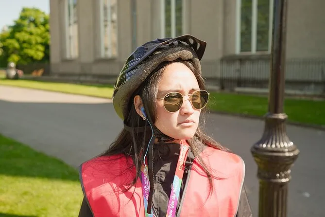 Der Morgen begann nicht ganz ideal – auf halbem Weg zum Treffpunkt fiel mir auf, dass ich meine Regenjacke vergessen hatte. Typisch. Aber unsere Guide Aoife reichte mir einfach eine Warnweste und grinste: „Das wird schon, es nieselt nur ein bisschen.“ Also stieg ich aufs E-Bike (mein erstes Mal!) und versuchte, nicht zu nervös zu wirken, während alle ihre Helme richteten. Die Stadt fühlte sich vom Sattel aus irgendwie viel näher an – selbst mit dem Nieselregen auf der Brille.