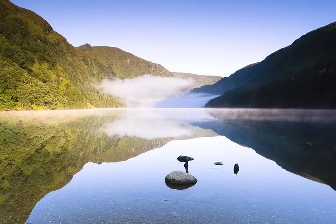 Starte von Dublin aus zu einem Tagesausflug in Wicklows wilde Hügel mit einem lokalen Guide, der dich auf einer 1,5-stündigen Wanderung durch Waldpfade und zu Aussichtspunkten begleitet. Genieße dein Mittagessen im Dorf Enniskerry, bevor du Sally Gap, Lough Tay („Guinness Lake“) und die alten Klosterruinen von Glendalough erkundest – Zeit für stille Momente oder Gespräche mit der Gruppe inklusive.
