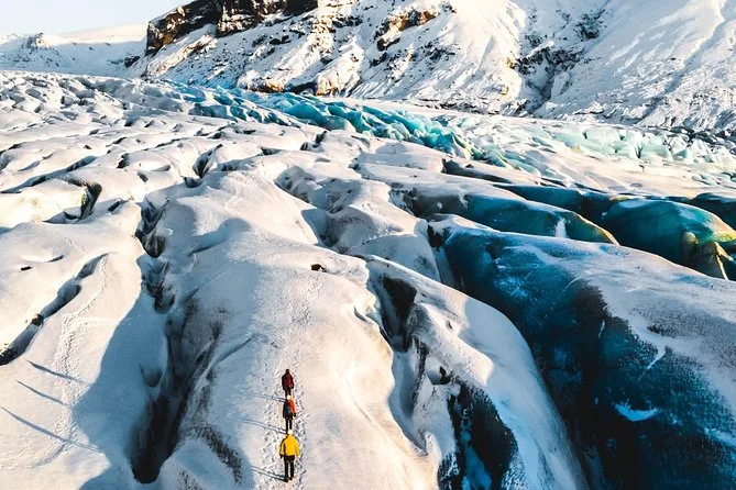 Deine drei Tage umfassen Abholung und Rückfahrt von Bushaltestellen in Reykjavík, WLAN im Bus mit leiser isländischer Musik (ich summe noch immer eine Melodie), zwei Übernachtungen in Südisland, komplette Sicherheitsausrüstung für Gletscherwanderung und Eishöhlen-Erkundung sowie Zeit mit lokalen Guides, die jede Geschichte entlang dieser wilden Straßen kennen.