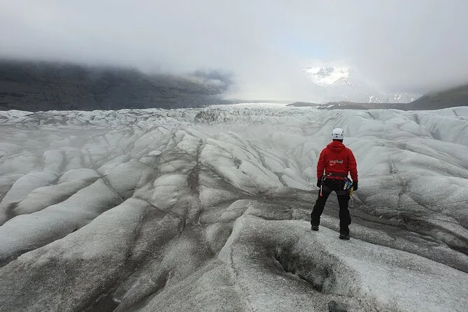 „Wenn ihr genau hinhört, könnt ihr das Knacken des Gletschers hören“, sagte unsere Reiseleiterin Sigrún und blieb mitten auf dem blauen Eis des Sólheimajökull stehen. Ich versuchte, stillzustehen, doch meine Steigeisen knirschten bei jeder kleinen Bewegung. Der Wind biss scharf in meine Wangen, aber ehrlich gesagt fühlte es sich an, als stünde ich mitten in einer anderen Welt – auf diesem lebendigen Fluss aus Eis. Sigrún reichte mir eine Eisaxt (die ich viel zu fest hielt) und zeigte auf die tiefblauen Risse, die sich durch den Gletscher zogen. Das Ganze sah fast unecht aus, als hätte jemand mit einem Marker nachgezeichnet. Wir standen einfach eine Weile schweigend da. Es war seltsam still, abgesehen vom Knacken und dem Rufen einiger Möwen hoch oben.