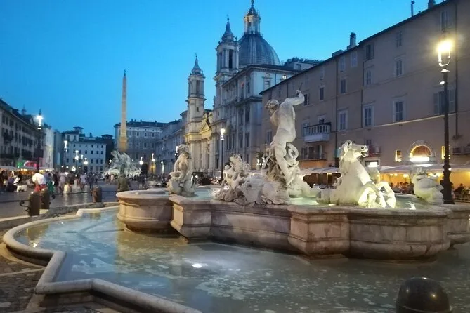 Das Eis war ein echtes Highlight – Marco führte uns zu einer kleinen Gelateria in der Nähe des Pantheons, von der er schwört, dass sie die beste in Rom ist. Ich probierte Pistazie; cremig und nicht zu süß. Zum Abschluss landeten wir auf der Piazza Navona, wo Straßenkünstler sich für den Abend vorbereiteten. Der Vierströmebrunnen von Bernini wirkt aus der Nähe noch beeindruckender, besonders mit dem Palazzo Pamphili direkt daneben. Der ganze Platz fühlte sich lebendig an – Kinder rannten umher, Paare teilten sich Drinks an den Außentischen, und das Lachen schwebte durch die Luft. Wer Rom bei Nacht wirklich erleben will – hier ist der perfekte Ort dafür.