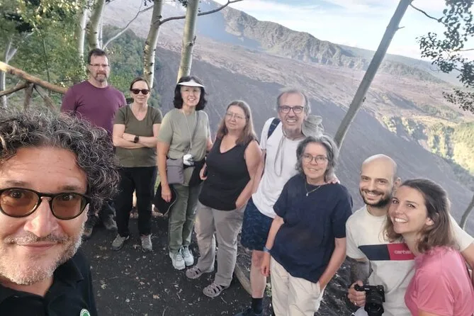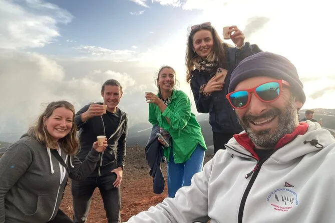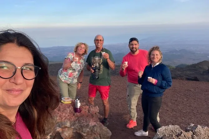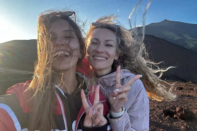Später krochen wir mit Helm und Taschenlampen in eine Lavahöhle (fühlte sich an wie kleine Entdecker). Die Luft darin war feucht und kalt, ganz anders als draußen – man hörte seinen eigenen Atem widerhallen. Danach wanderten wir zu den alten Kratern auf 2.000 Metern Höhe. Der Wind blies kräftig, doch dann wurde alles still, nur das Knirschen unserer Stiefel auf dem schwarzen Kies war zu hören. Den Sonnenuntergang über dem Valle del Bove zu beobachten… diese Farbe vergesse ich nicht – kein richtiges Orange oder Pink, eher ein einzigartiger Ton, den es nur hier gibt.
