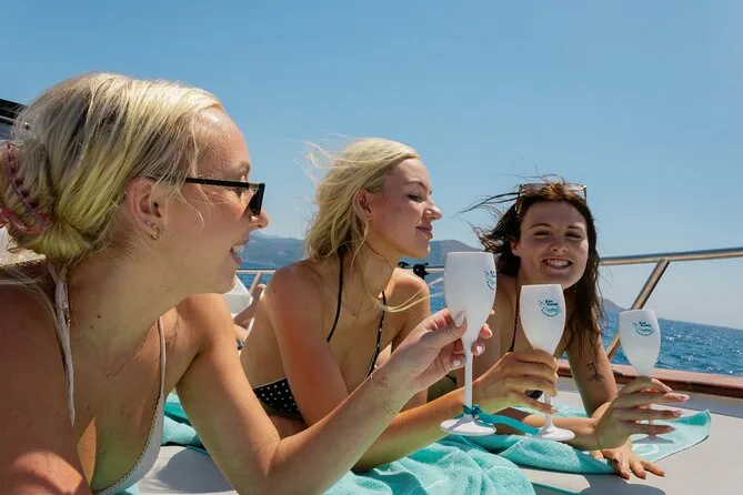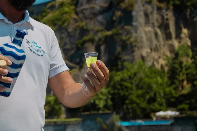 Dein Tag startet mit dem Transfer vom Zentrum Sorrents zum Hafen, wo du deinen englischsprachigen Skipper und die lokale Gastgeberin triffst. An Bord gibt es Snacks und ein Caprese-Sandwich zum Mittag, Softdrinks (plus Wein oder Bier nach Wunsch), dazu Prosecco und hausgemachten Limoncello, bevor es am Nachmittag zurück zum Hafen von Sorrent geht – Sonnenbrand optional, aber wahrscheinlich verdient.