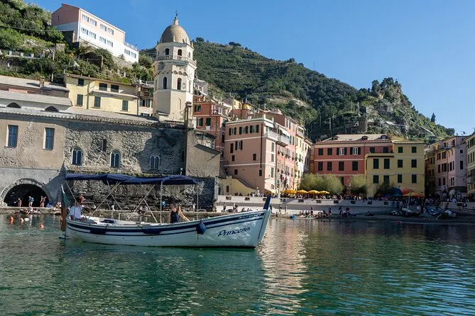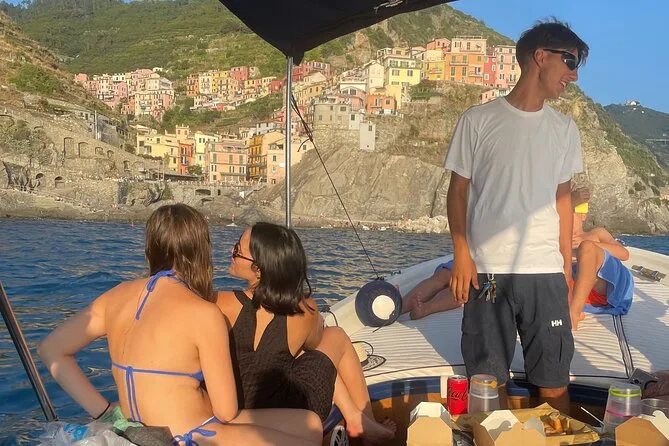 Dein Abend beginnt am Steg von Monterosso mit einer lokalen Crew, die dich zu allen fünf Cinque Terre Dörfern entlang der Küste begleitet. Während der Fahrt gibt es Wasserflaschen und Zeit zum Schwimmen oder Schnorcheln mit bereitgestellter Ausrüstung in einer versteckten Bucht. An Bord erwartet dich ein Aperitivo mit ligurischer Focaccia und regionalem Weißwein, bevor ihr bei Einbruch der Dämmerung zurückkehrt.
