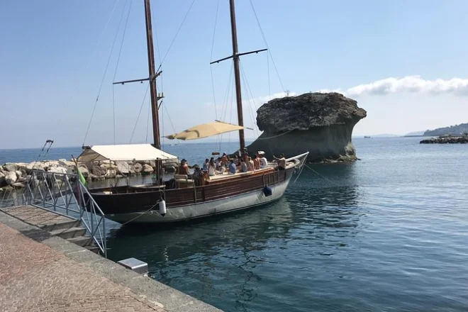 Mit dem Schoner entlang der Küste Ischias segeln, in geheimen Buchten schwimmen, Mittagessen auf See