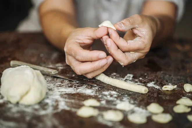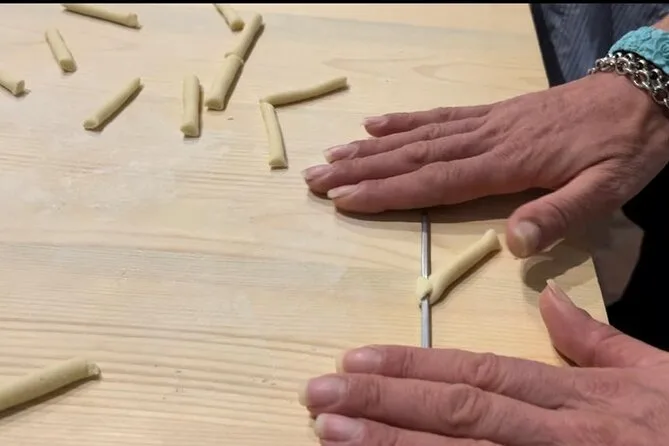 Du lernst Orecchiette und Maccheroni al Ferretto zu machen, dazu zwei Soßen (Tomate und Kichererbse/Gemüse) sowie Vorspeisen und Nachtisch.