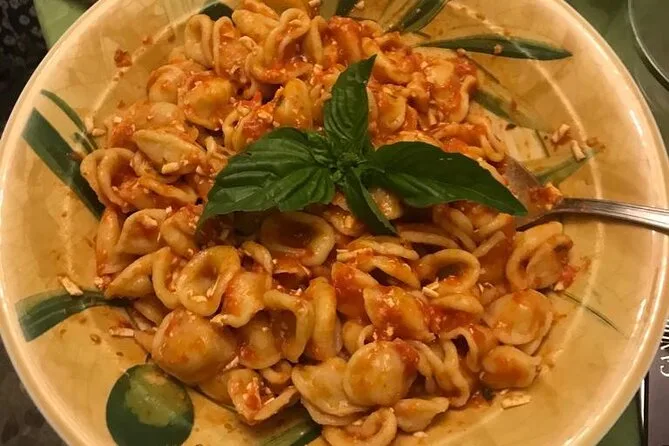 Dein Abend startet mit einem Aperitif mit Spezialitäten aus dem Salento, Leccese-Kaffee auf Eis, praktischen Anleitungen zum Orecchiette- und Maccheroni-al-Ferretto-Machen mit einer einheimischen Köchin, zwei klassischen Soßen, anschließendem Abendessen mit hausgemachtem Brot, Nachtisch, lokalen Weinen (rot/rosé/weiß), hausgemachtem Limoncello – und du nimmst Rezepte sowie dein eigenes Pasta-Werkzeug als Erinnerung mit.