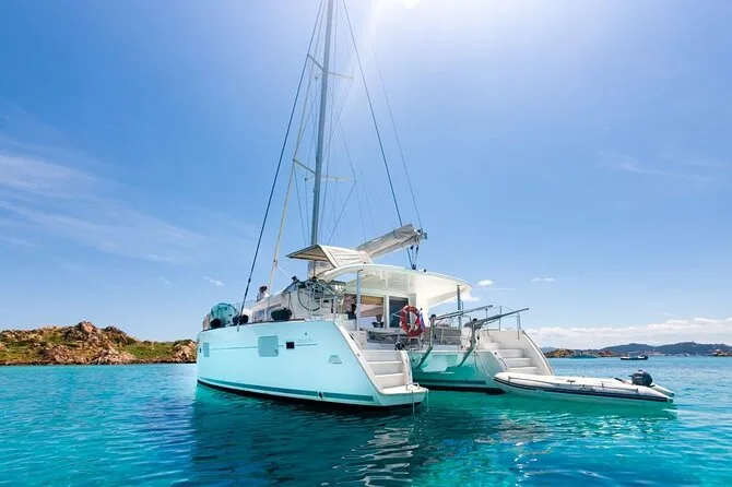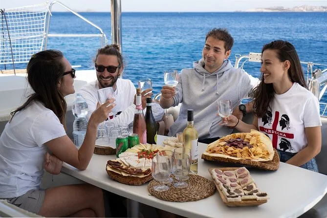 Dein Tag umfasst eine Segeltour mit Luxus-Katamaran ab Palau durch das Maddalena-Archipel mit mehreren Badepausen, einem Aperitif mit sardischen Spezialitäten an Bord, gefolgt von einem frisch zubereiteten Mittagessen (vegetarisch oder ohne Fisch auf Wunsch), Vermentino-Wein oder Bier sowie Softdrinks den ganzen Tag über, Obst und traditionelle Süßigkeiten mit Kaffee oder Tee nach dem Essen – alles begleitet von Einheimischen, die diese Gewässer bestens kennen.