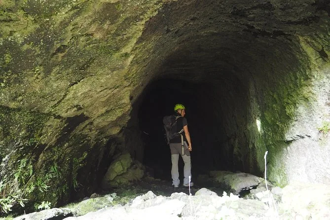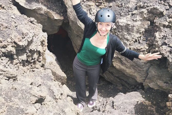 Ja, du erkundest eine vulkanische Höhle, für die Helme und Lampen von den Guides gestellt werden.