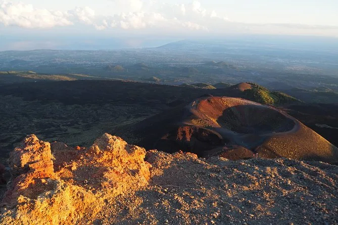 Dein Tag beinhaltet kostenloses Parken am MontataGrande in Trecastagni, den Transfer mit einem klimatisierten 4x4 und englischsprachigem Guide (weitere Sprachen möglich), geführte Wanderungen über uralte Lavafelder und Kraterränder auf ca. 2000 Metern Höhe, die Erkundung einer vulkanischen Höhle mit Helm und Licht sowie die Verkostung lokaler Etna-Spezialitäten und eines süßen sizilianischen Aperitifs bei Sonnenuntergang, bevor es gemeinsam wieder runtergeht.