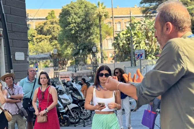 Starte deinen Neapel-Rundgang am Piazza Dante mit einem lokalen Guide, der die Stadt lebendig macht. Genieße frische Gebäckstücke auf der Spaccanapoli, triff Handwerker in der San Gregorio Armeno und erlebe lebendige Plätze und Kirchen. Freu dich auf Lachen, Straßenklänge, überraschende Details – und vielleicht Mehl auf dem Shirt.