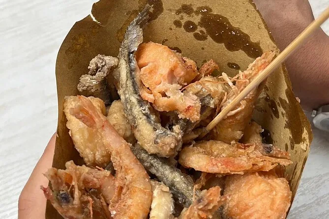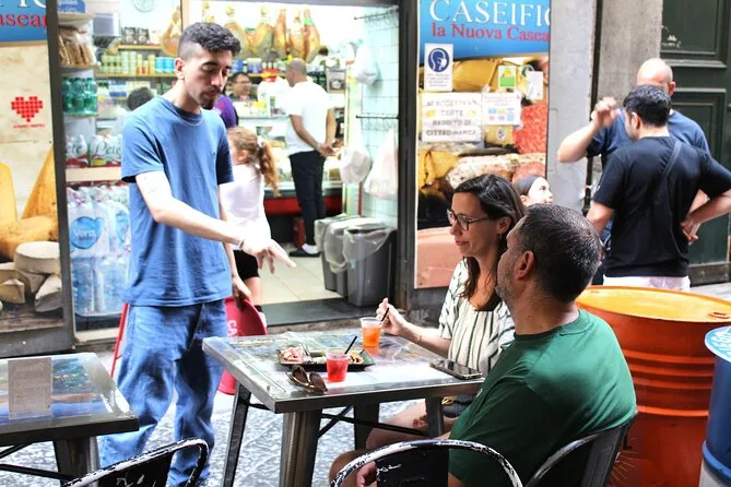 Dein Tag beinhaltet Verkostungen von frischer Mozzarella mit Salami und Oliven, knusprigen taralli aus einer Traditionsbäckerei, cremige Pasta frittatina, saftige Fleischbällchen in Tomatensauce aus einer Familienfeinkost, frittierte Meeresfrüchte direkt vom Marktstand sowie Wasser und alkoholische Getränke wie Spritz oder Limoncello – alles begleitet von einem lokalen Guide, der die Gegend bestens kennt.