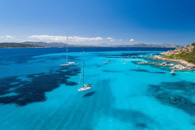 Dein Tag startet in der Moys Marina in Olbia mit kostenfreien Parkplätzen, alle Gebühren und Steuern sind inklusive. Du nutzt die Schnorchelausrüstung für beide Stopps bei Figarolo und Cala Moresca, wirst von einem erfahrenen Naturführer begleitet, der unterwegs spannende Geschichten erzählt, und bekommst an Bord Softdrinks, Eistee oder lokales Bier sowie eine sardische Snackplatte serviert, bevor es zurück in den Hafen geht.