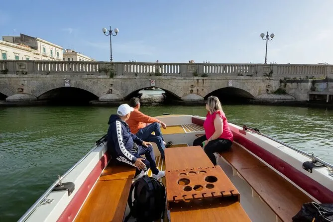 Du siehst Castello Maniace, den Dom von Syrakus, die Kirche Santa Lucia, Palazzo Veneziano, die Spanischen Mauern, die Fonte Aretusa und mehr vom Wasser aus.