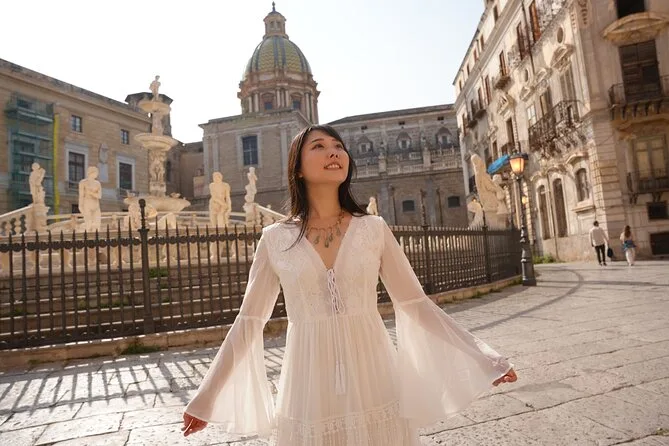 Dein Tag beinhaltet einen geführten Spaziergang durch Palermos Altstadt mit einer professionellen Fotografin, die ihre eigene Kamera mitbringt; Tipps zum Posen; Zeit an Highlights wie Quattro Canti und Piazza Pretoria; auf Wunsch Outfitwechsel; und die digitale Lieferung von 150–200 hochwertigen Bildern innerhalb von zwei Tagen nach dem Shooting.