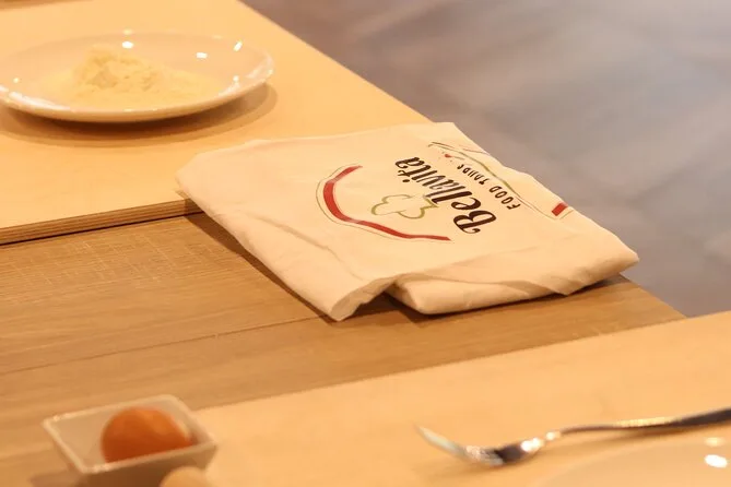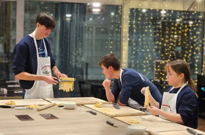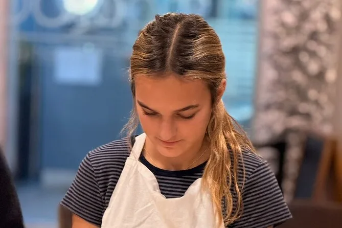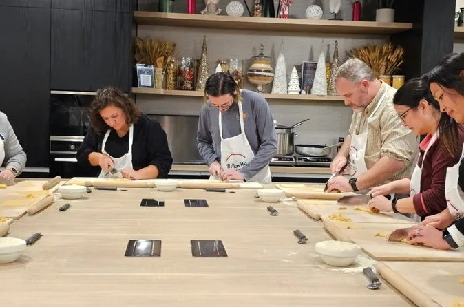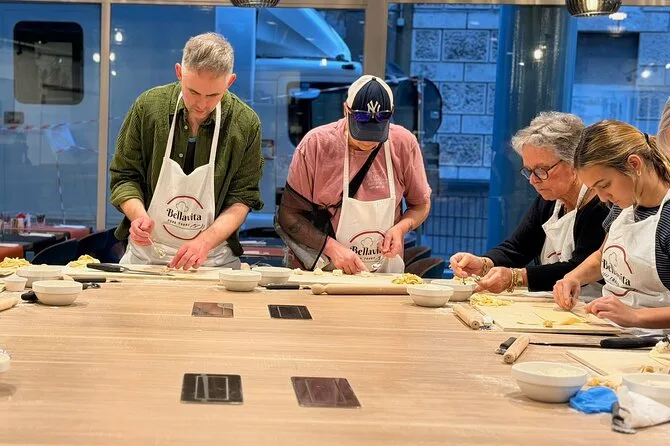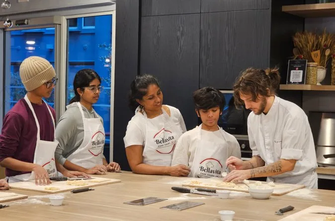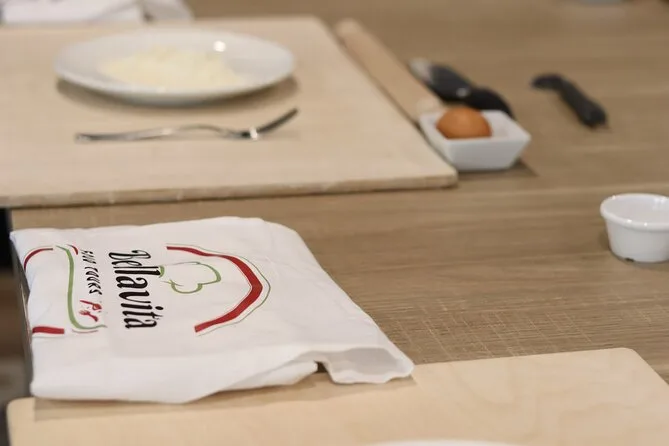 Inklusive Schürze, damit du dich ohne Sorgen dreckig machen kannst, alle nötigen Utensilien und Zutaten für Pasta und Tiramisu, Wasser während des gesamten Kurses, Anleitung von einem englischsprachigen Profi-Koch, der auch Familiengeschichten teilt, sowie dein selbstgemachtes Essen: Fettuccine mit drei Soßen zur Wahl, Ravioli mit Butter-Salbei-Soße und hausgemachtes Tiramisu – alles zusammen genossen nahe Termini.