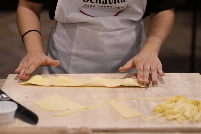 Du knetest frischen Teig von Hand, rollst Fettuccine aus, formst Ravioli mit eigener Füllung und schichtest Tiramisu unter Anleitung deines Kochs. Freu dich auf viel Spaß, Mehl überall, lokale Tipps – und ein echtes römisches Essen mit neuen Freunden am Ende.