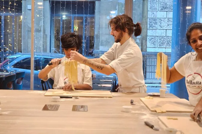 Als Erstes fiel mir das sanfte Klopfen des Teigs auf, der auf den Holztisch schlug – keine schicke Profi-Küche, sondern ein heller Raum nur wenige Minuten vom Bahnhof Termini entfernt. Unser Koch Marco hatte Mehl auf dem Hemd und ein Lächeln, das mich sofort fühlen ließ, als wäre ich zufällig in eine Familienküche geplatzt. Er zeigte uns, wie man Eier und Mehl mischt – nicht abgewogen, sondern einfach nach Gefühl. Der Duft war warm und eiig, und klebte stundenlang an meinen Händen.