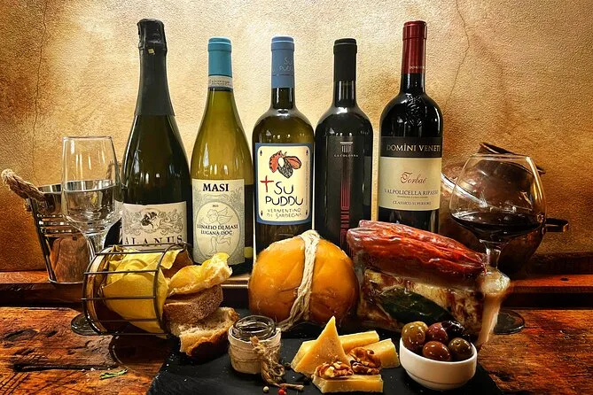Dein Tag beinhaltet ein 24-Stunden-Hop-On-Hop-Off-Ticket für die Tiber-Flussfahrt (mit vier zentralen Haltestellen), alle geführten Verkostungen im Fabullus-Weinkeller in Trastevere – inklusive Prosecco zum Empfang und vier Gläsern ausgewählter italienischer Weine (weiß und rot), Wasser oder Softdrinks bei Bedarf, saisonale Slow-Food-zertifizierte Produkte wie Käse und Wurst, Focaccia mit Olivenöl, Dessert (Eis oder Tiramisu) und Kaffee zum Abschluss – sowie spannende Geschichten vom Experten, bevor du jederzeit wieder in die Straßen Roms eintauchst.