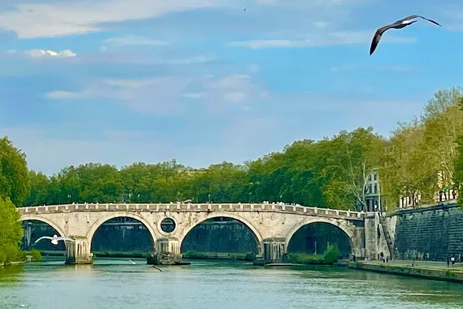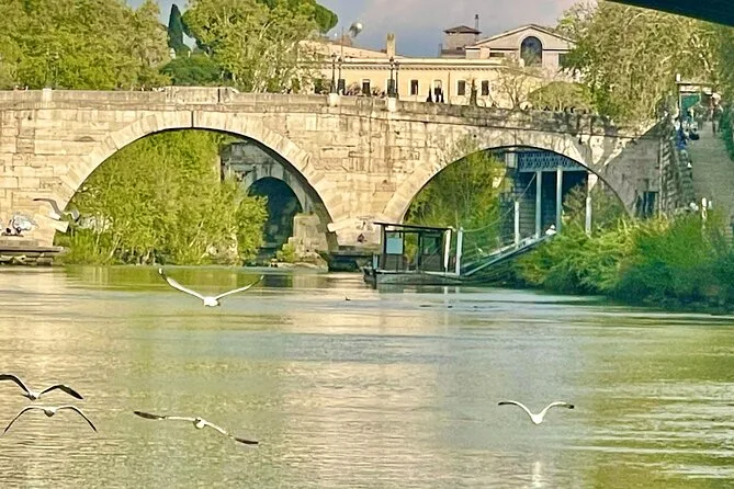 Wir stiegen am Ponte Sant’Angelo ins Boot, und sofort spürte ich diese besondere Ruhe, die man nur auf dem Wasser hat – obwohl Rom direkt über uns noch lebendig und laut war. Der Fluss wirkte langsam und grünlich, fast schläfrig, und als wir unter Brücken wie dem Ponte Sisto hindurchglitten, zeigte uns unser Guide kleine Details, die ich zu Fuß nie bemerkt hätte: alte Schnitzereien, Wäsche, die über dem Ufer im Wind flatterte. Ein Radfahrer winkte uns zu – ich glaube, er fand uns interessanter als wir ihn.