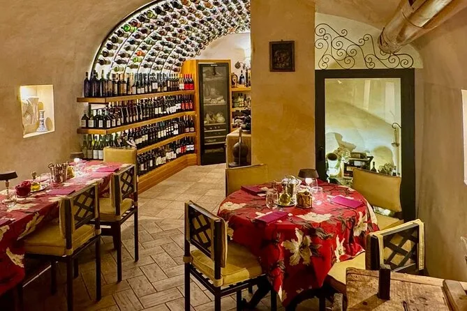 Am Tiberinsel-Anleger stiegen wir aus und schlenderten durch das Trastevere-Viertel – Kopfsteinpflaster, verwitterte Fensterläden, der leichte Duft von Espresso und etwas Gebratenem (vielleicht Artischocken?). Es war schwül, aber nicht unangenehm, sodass wir entspannt bummelten. Im Fabullus-Weinkeller führte uns Claudia die steinernen Stufen hinab in eine ehemalige römische Zisterne. Die Luft wurde sofort kühler und erdiger. Sie reichte mir ein Glas Prosecco und erzählte von der Geschichte des Kellers. Ich versuchte „cisterna romana“ nachzusprechen, und sie lächelte – mein Akzent ist wohl hoffnungslos.