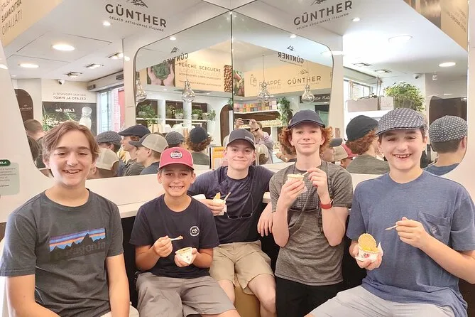 Du probierst Pizza al taglio, Gebäck, Käse, Salami und handgemachtes Eis.