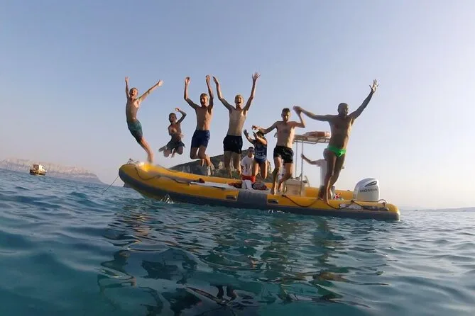 Dein Tag beginnt mit der Abholung per Boot in Golfo Aranci, begleitet von einem lokalen Guide, der dich zur Delfinbeobachtung bei Figarolo Island und Capo Figari führt. Schnorchelausrüstung ist für die Schwimmstopps an malerischen Orten wie Cala Greca und Cala Moresca inklusive. Mineralwasser, Eistee und leichte Snacks werden an Bord serviert, bevor es gemeinsam zurück ans Ufer geht.
