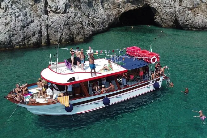 Dein Tag beinhaltet eine Fahrt mit einem lokalen Skipper, der spannende Geschichten zu römischen Ruinen und Küstenhighlights erzählt, die Nutzung von Schnorchelmasken (eigener Schnorchel mitbringen), schattige Sitzplätze unter einem Sonnenschutz, eine Frischwasserdusche zum Abspülen nach dem Schwimmen in der Blauen Grotte, Schwimmnudeln für mehr Komfort im Wasser und eine praktische Leiter zum Ein- und Ausstieg vor der Rückkehr zum Hafen von Sperlonga.