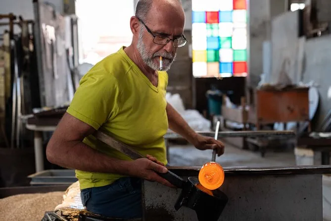 Ja, du besuchst eine alte Glasmanufaktur in Murano und siehst traditionelle Blas- und Formtechniken live.