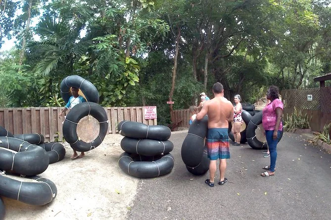 Unser Guide Devon gab uns eine kurze Einführung – nichts Aufwendiges, nur was uns erwartet und ein paar Tipps zum Steuern, falls man die Tube drehen wollte. Ich bemerkte, dass auch einige Leute raften; beide Gruppen starteten vom selben Punkt. Sobald man in der Tube sitzt, heißt es loslassen. Die Strömung übernimmt die Arbeit und trägt einen vorbei an verwurzelten Ufern und kleinen Vögeln, die über einem hinwegsausen. Ab und zu zeigte Devon auf eine Pflanze oder rief jemandem am Ufer zu. Es fühlte sich an, als wären alle eingeweiht: Das hier ist einer der besten Flüsse Jamaikas, um einfach zu treiben und die Zeit zu vergessen.