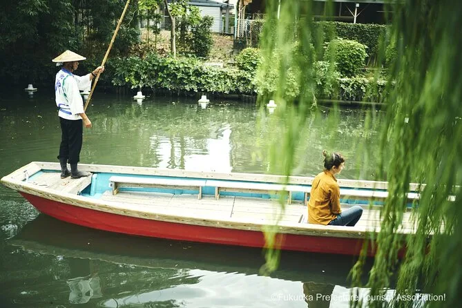 Dein Tag beinhaltet alle Zugtickets zwischen Fukuoka, Dazaifu und Yanagawa, die Flussfahrt, einen englischsprachigen Guide mit lokalen Geschichten sowie ein frisches Umegae-Mochi am Dazaifu-Schrein.
