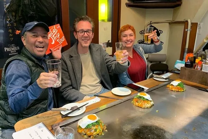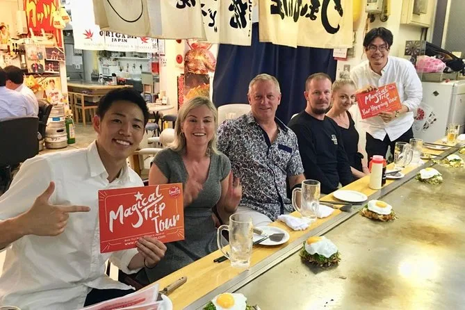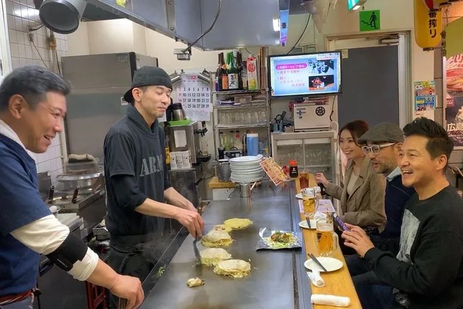 Du tauchst ein in Hiroshimas versteckte Barszene, beginnst mit frisch zubereitetem Okonomiyaki direkt am Tisch und hüpfst dann von gemütlicher Izakaya zu Izakaya, um Sake und lokale Snacks zu probieren – alles begleitet von einem Insider, der jede Abkürzung und jeden Geheimtipp kennt. Freu dich auf Lachen, neue Freunde und Geschmäcker, die du lange nicht vergisst.